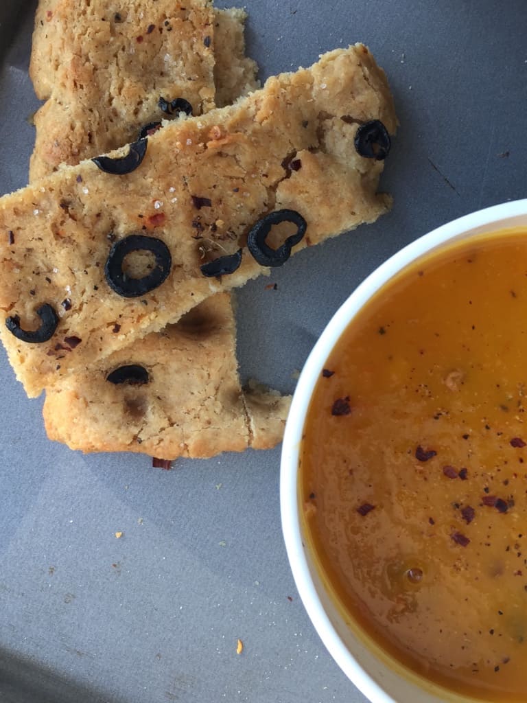 Note to self : I would add powdered Oats to this the next time I make it , but for now we truly enjoy this power packed soup that we had with Roasted Garlic Focaccia.