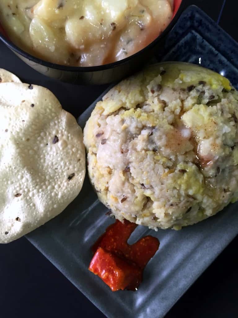 Today, we move to a Main course from Rajasthan adapted from Sanjeev Kapoor's Video. Panchkuti Dal Khichdi and Dahi wale Aloo . To most familiar with Khichdi, its a great comfort food, and this combo was well received by the husband, who's a fan of all Khichdis.