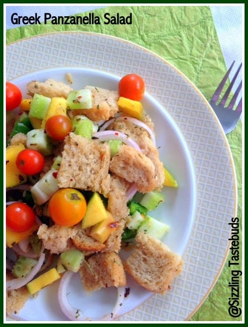 I had bookmarked this salad when I considered Greece but dropped it because I did not want to bake bread. Nice one. The cherry tomatoes give it such vibrant color