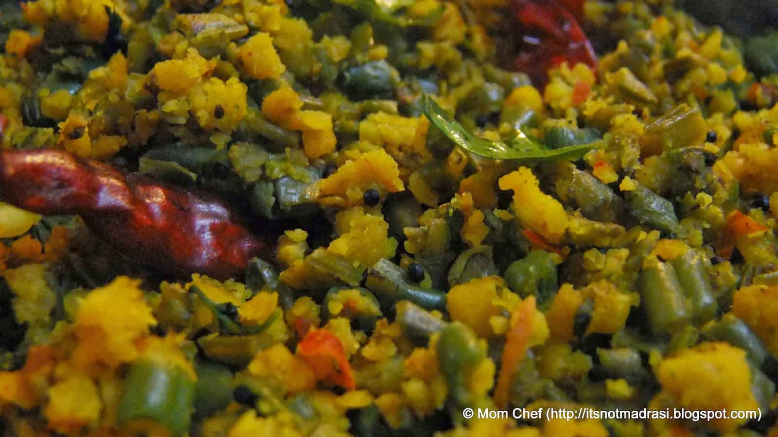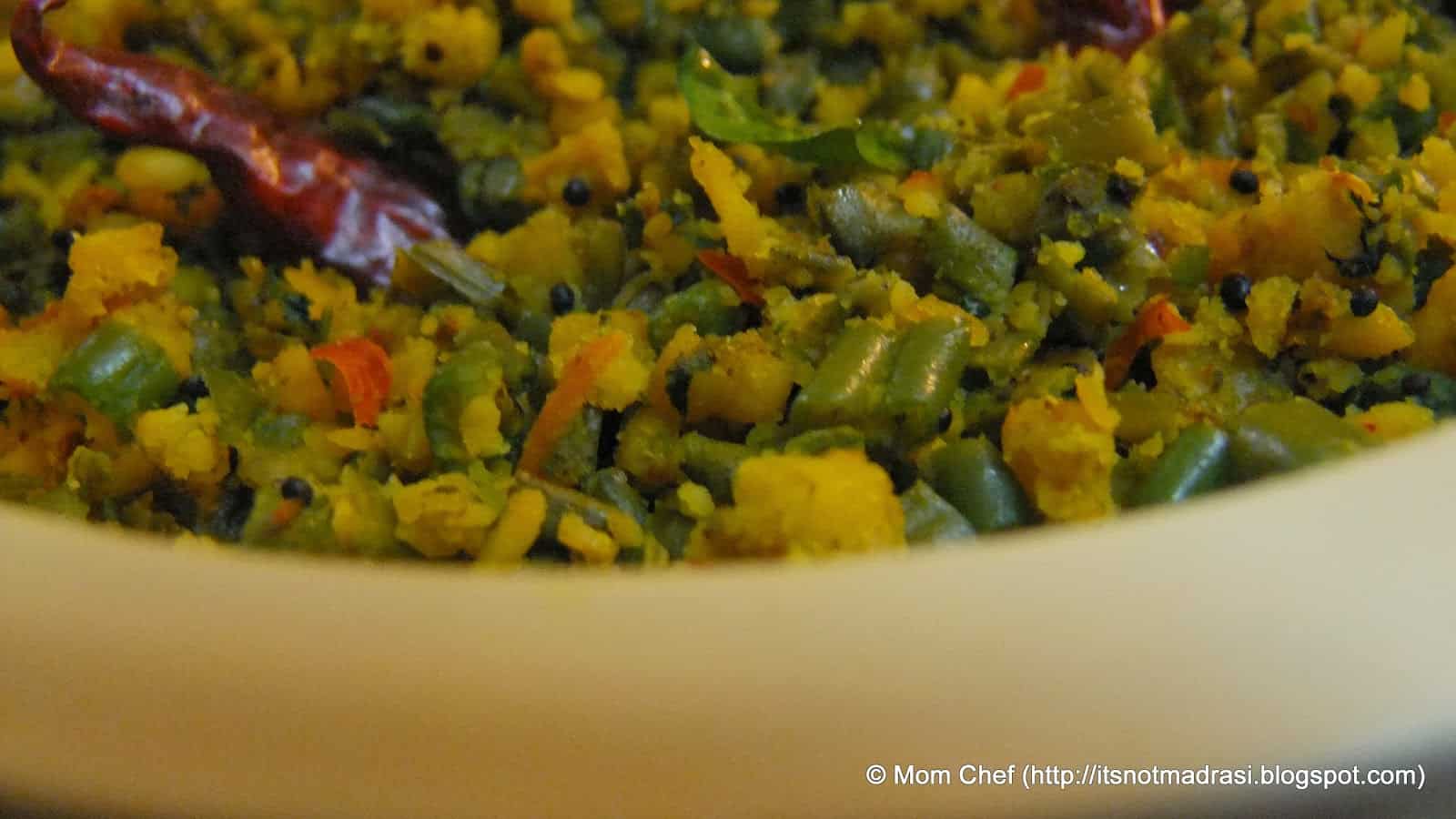 Paruppu Usuli is the corner stone of South Indian cuisine, esp that from Tamilnadu region. This dry curry finds its way to most festivals and occasion menus. Delicate veggies (beans / cluster beans) mixed with steamed lentil savoury cakes, this is a food connoisseur’s delightJ