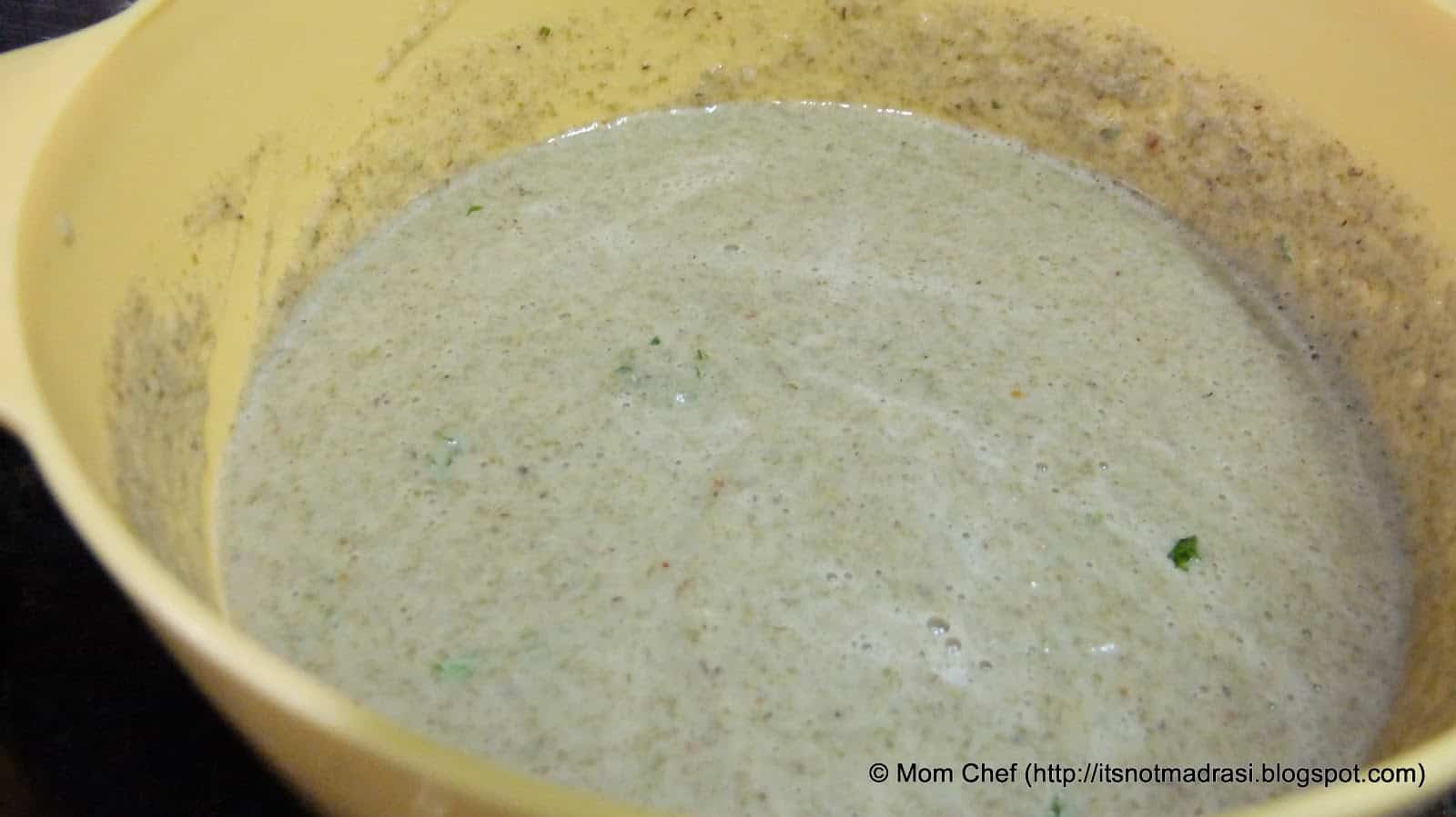 3) Prepare the tempering with oil, mustard seeds and cumin seeds. Pour on the prepared batter. Mix well.