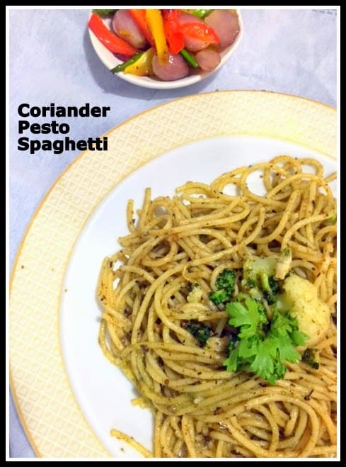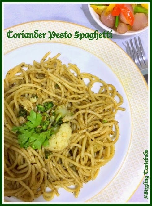 Coriander pesto should be handy when one can't get basil...love spaghetti with pesto. Good one Kalyani.