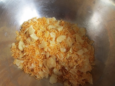 I added fine sev, but you can substitute sev with another cup of potato chips.