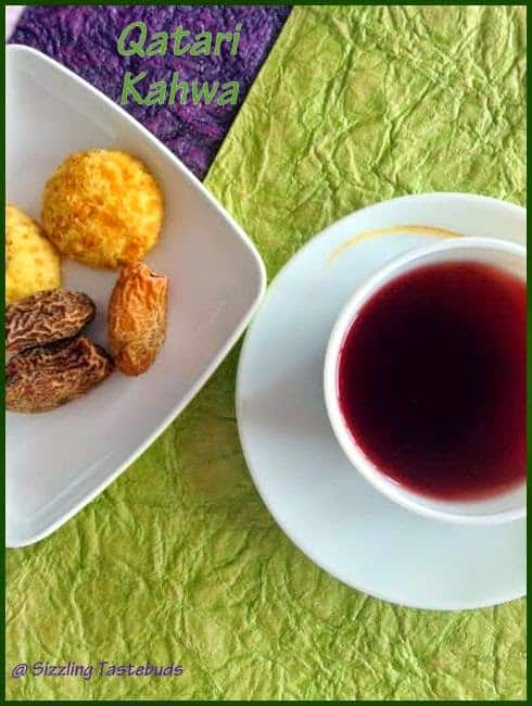 Like most Middle Eastern / Mediterranean influenced cuisine, Qatari cuisine also includes Hummus, Tabbouleh, Baba Ghanoush, Shawarma, Arabic Coffee, Umm Ali, Zatar pie, Mehalabiya etc. Today's dish is a quick and delicious beverage - Qatari Kahwa - thats usually made with, well coffee, and served with dates.