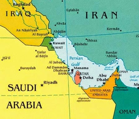 Asia, occupying the small Qatar Peninsula on the northeastern
