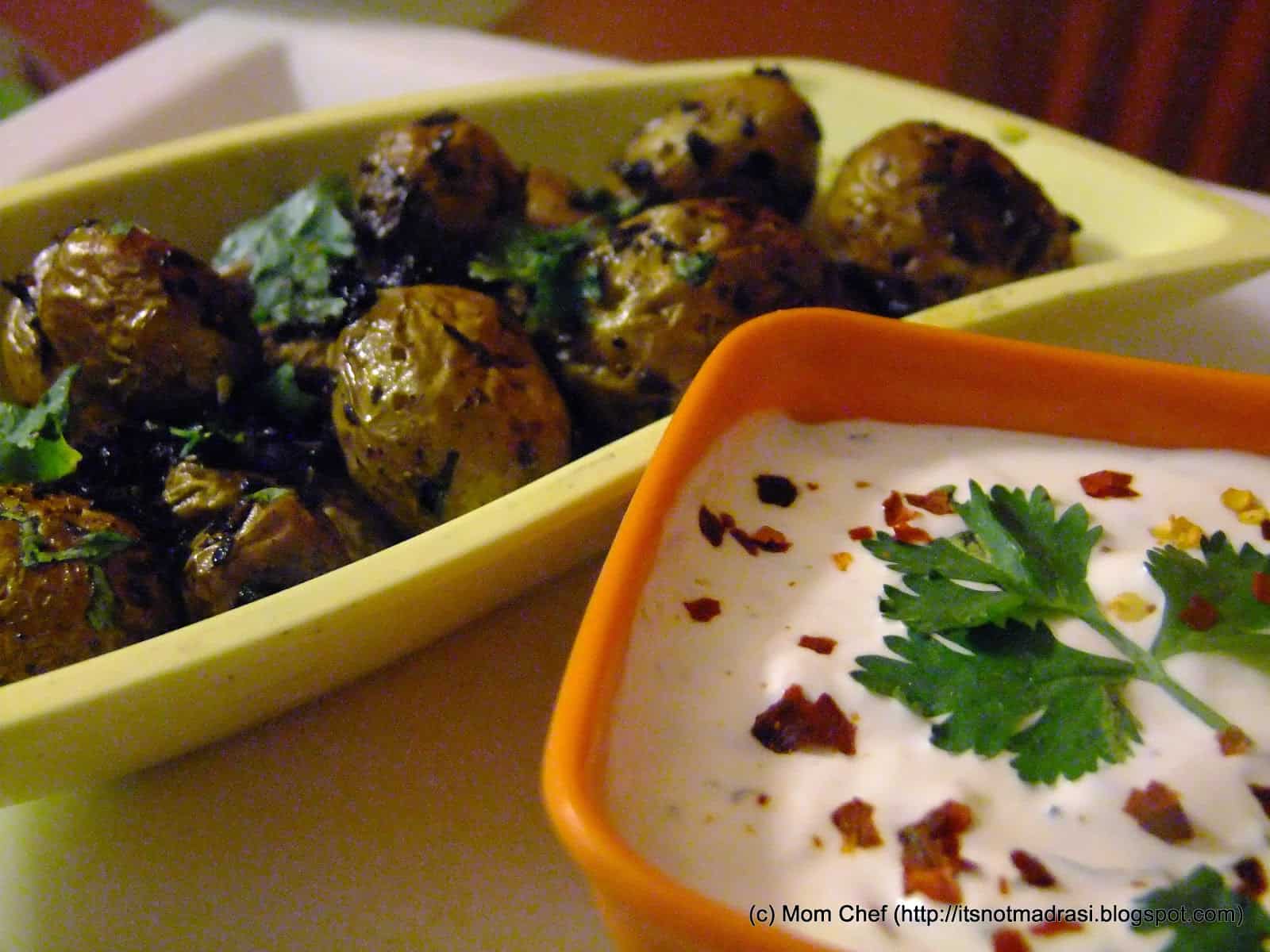 Roasted baby Potatoes with Cheesy dip is a pure kid’s delight. Eaten slightly warm off the oven, last night’s appetizer was polished off in a jiffy before the cartoon program / after dinner drive and all such enticements were even commencedJ