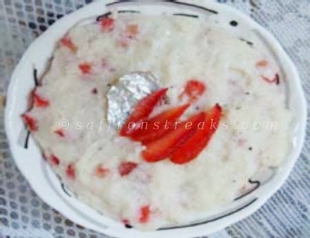 Sukanya of Saffronstreaks has sent us two sinfully rich strawberry delights - Strawberry Phirni & Strawberry Sandesh