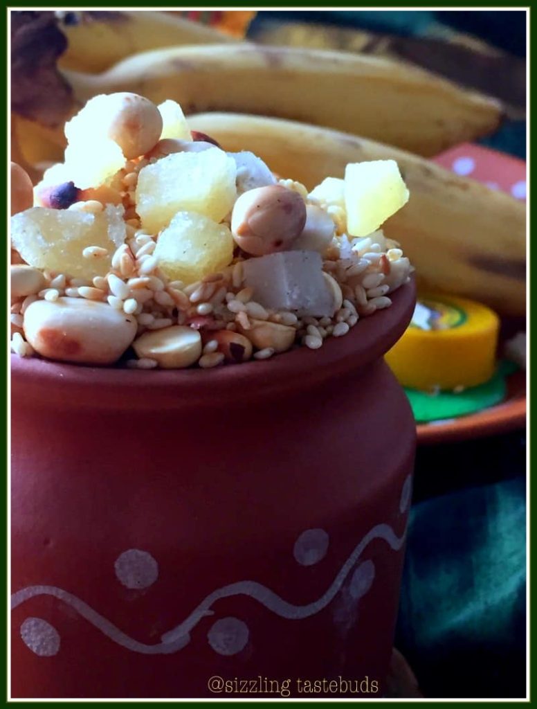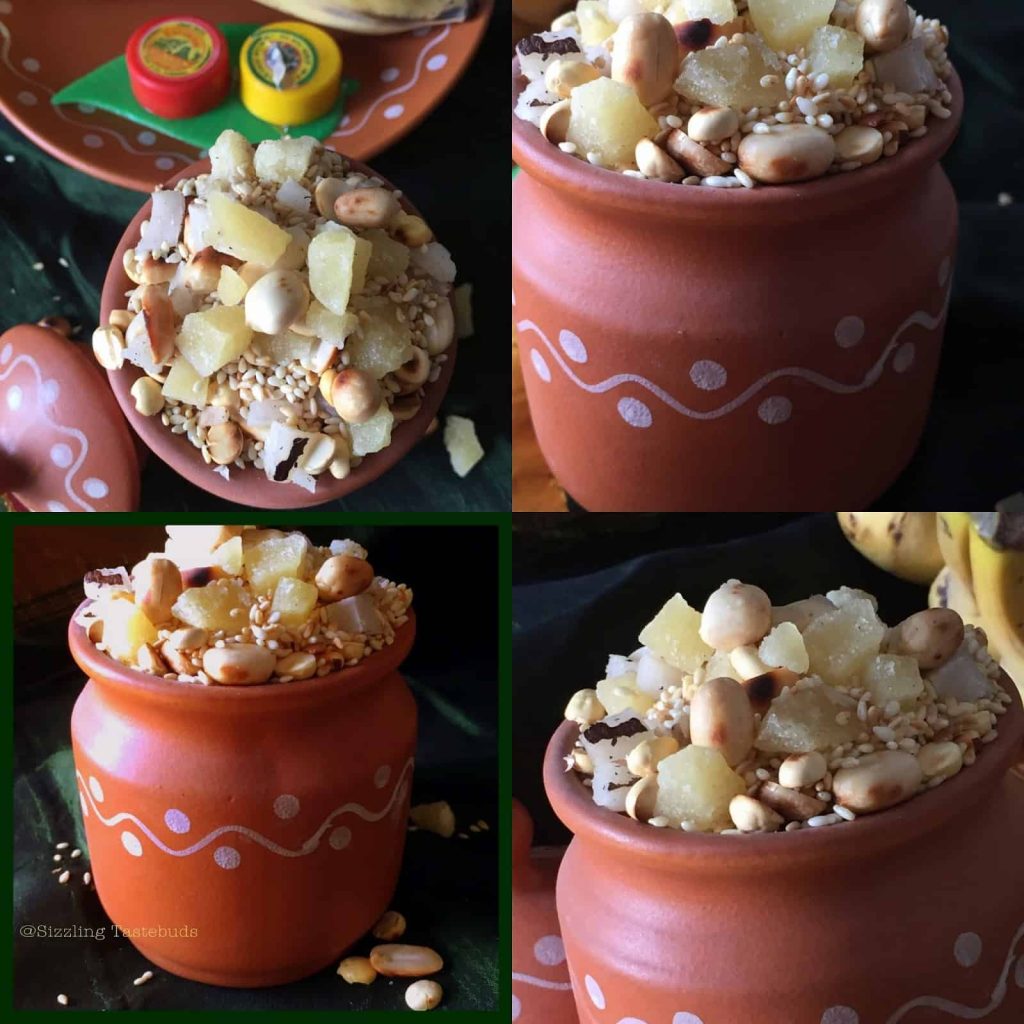 Brings back childhood memories when a similar preparation was made at the temple and offered as prasad. The only difference is that instead of jaggery, rock sugar was used. This gives me an idea what to make for this Makar Sankranti.