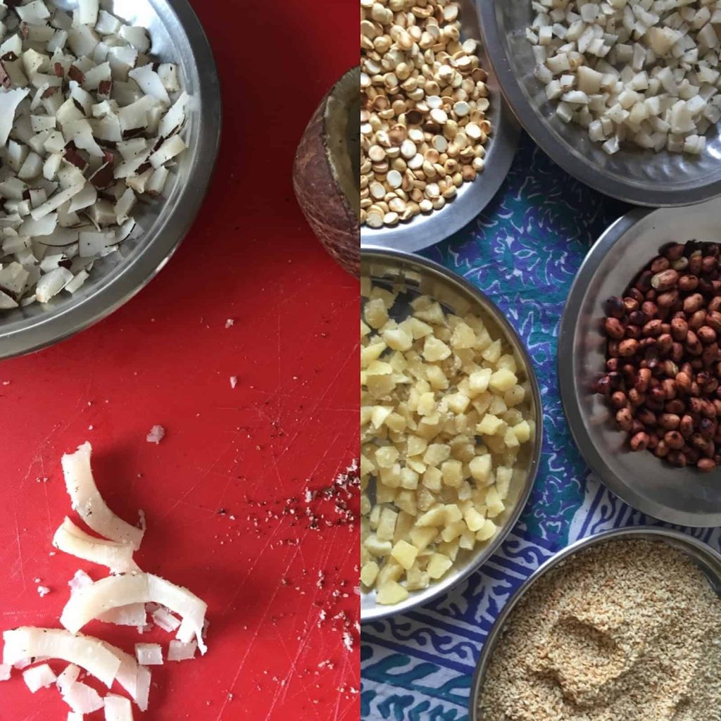 lunch dabbas were done with, and the hard jaggery, the slightly bittersweet bits of coconut, the nuttiness from the roasted sesame and peanut transported us to a heavenly experience….