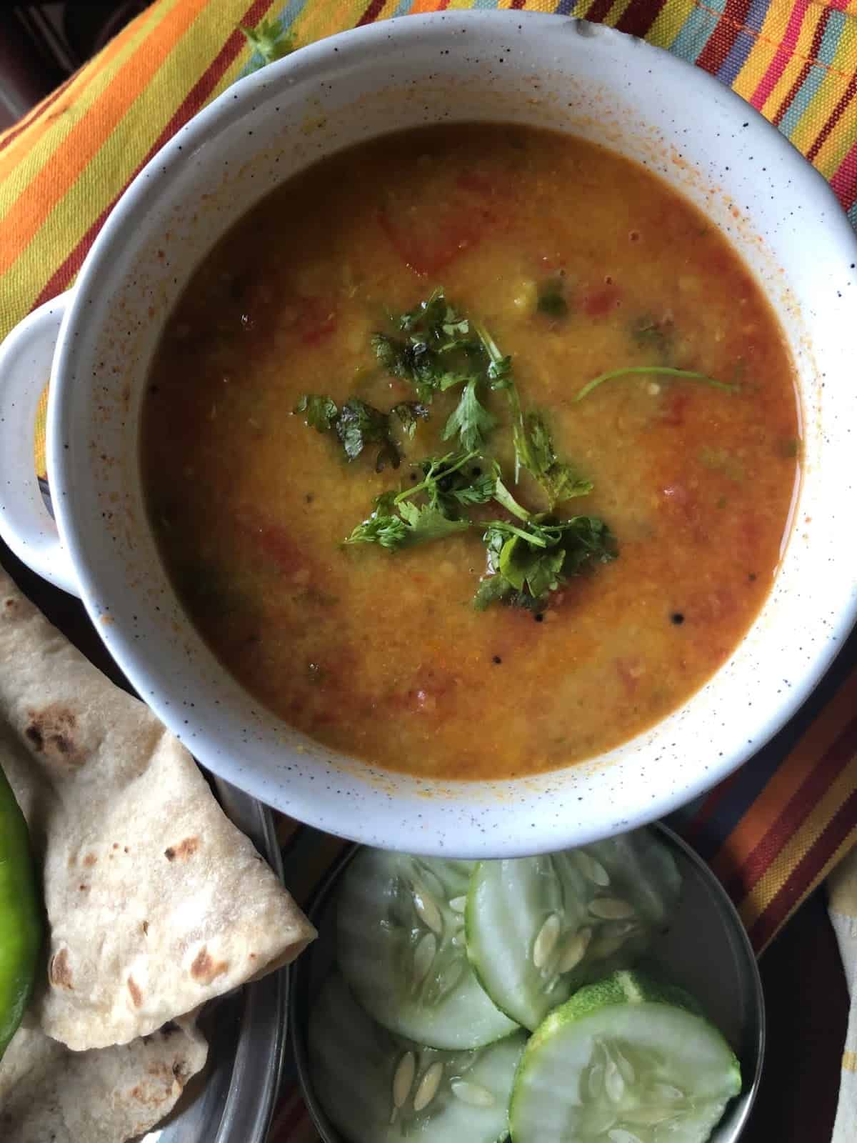 Today's is a super simple yet filling side dish for rice or hot rotis / phulkas Or Steamed rice. I haven't added any onion / tomato in this, but you can add as per your choice. If you like garlic-heavy dals, then check out the Lasooni Palak Dal with Zucchini which also tastes great with rice / Phulkas.