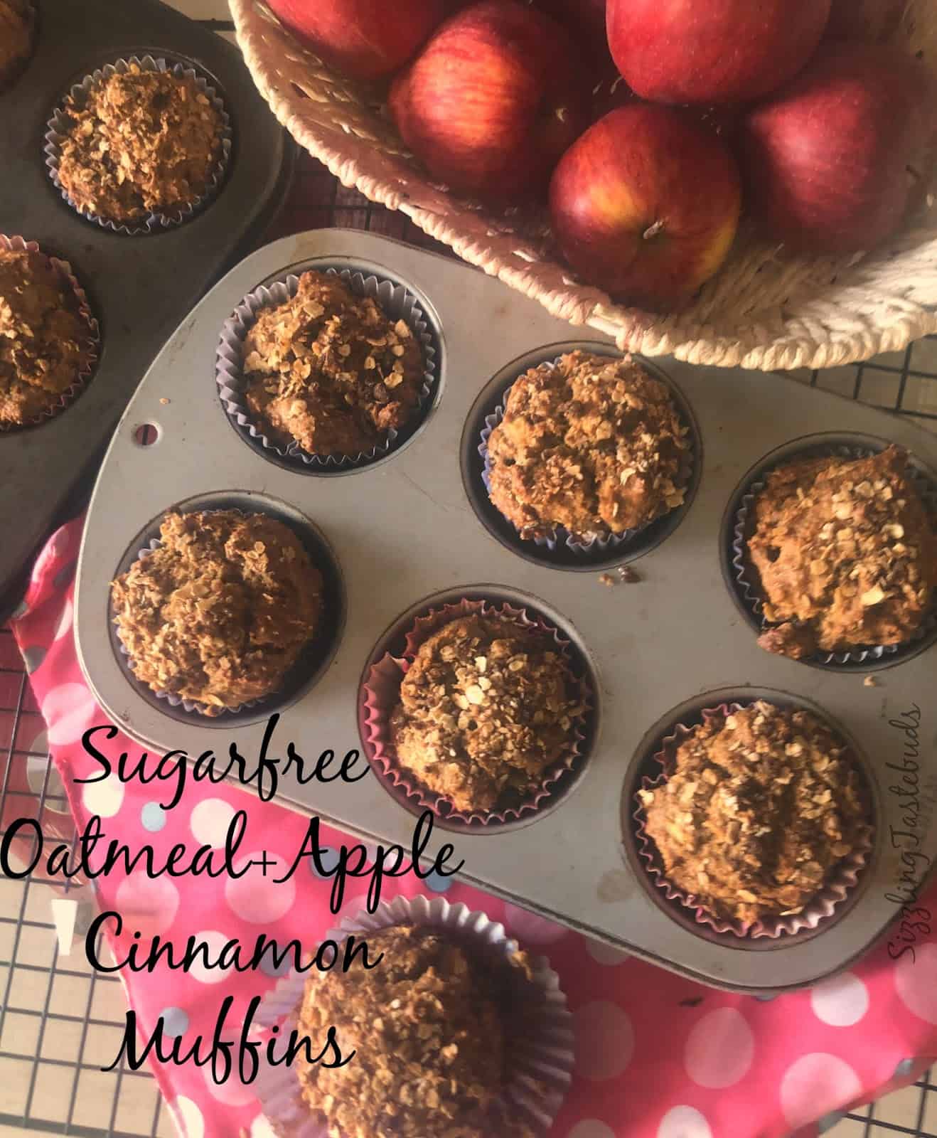 A healthy and Sugarfree and Eggless muffin for breakfast / snack made with Apples, cinnamon and OatsPin