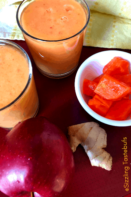 This week have Swati at #Foodiemondaybloghopwho’s given us a free hand theme to make desserts or beverages or salads with summer fruits and although my first pick was Watermelon Gazpacho, I liked the pics that came out of this no-cook smoothie better 🙂