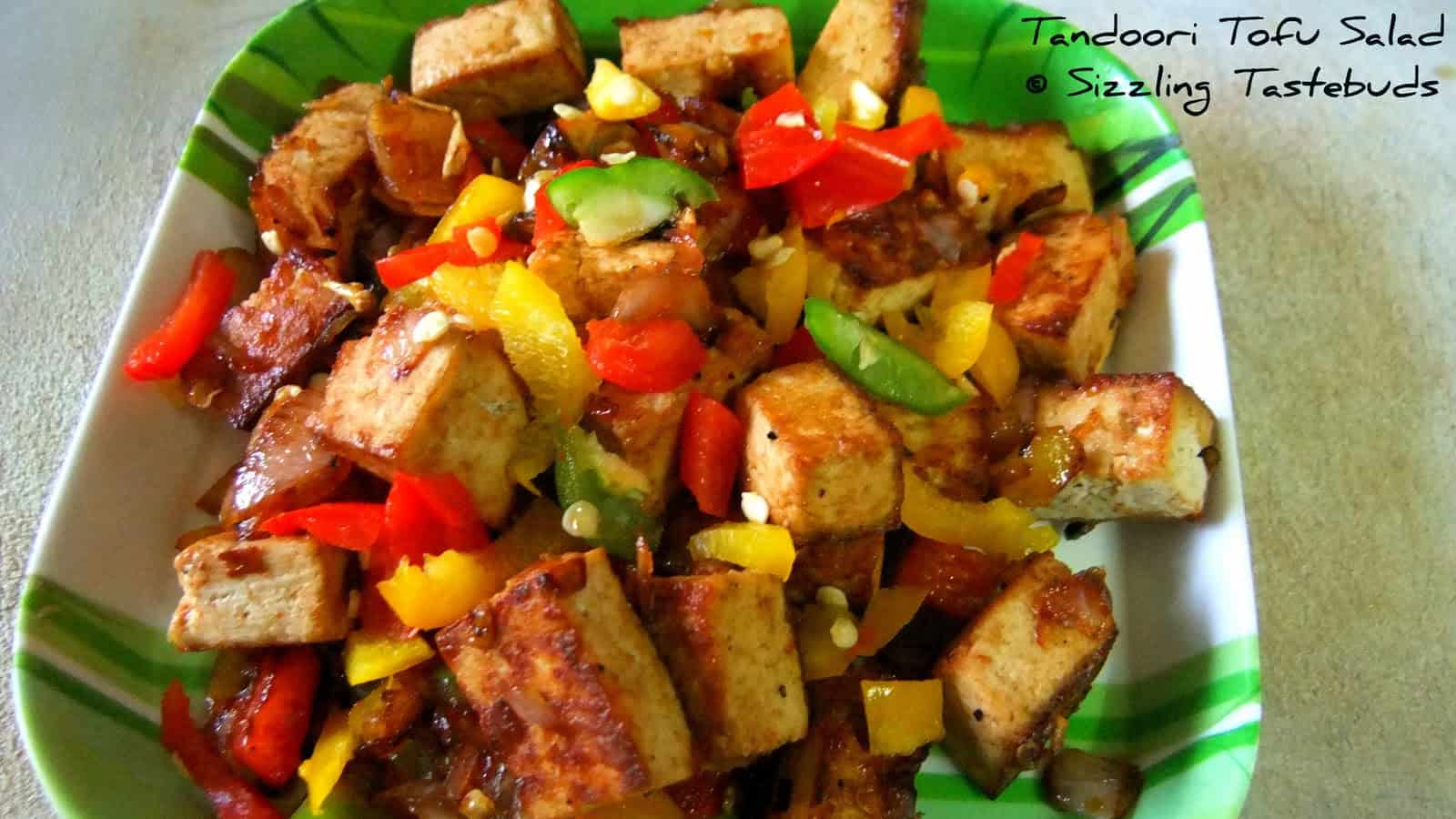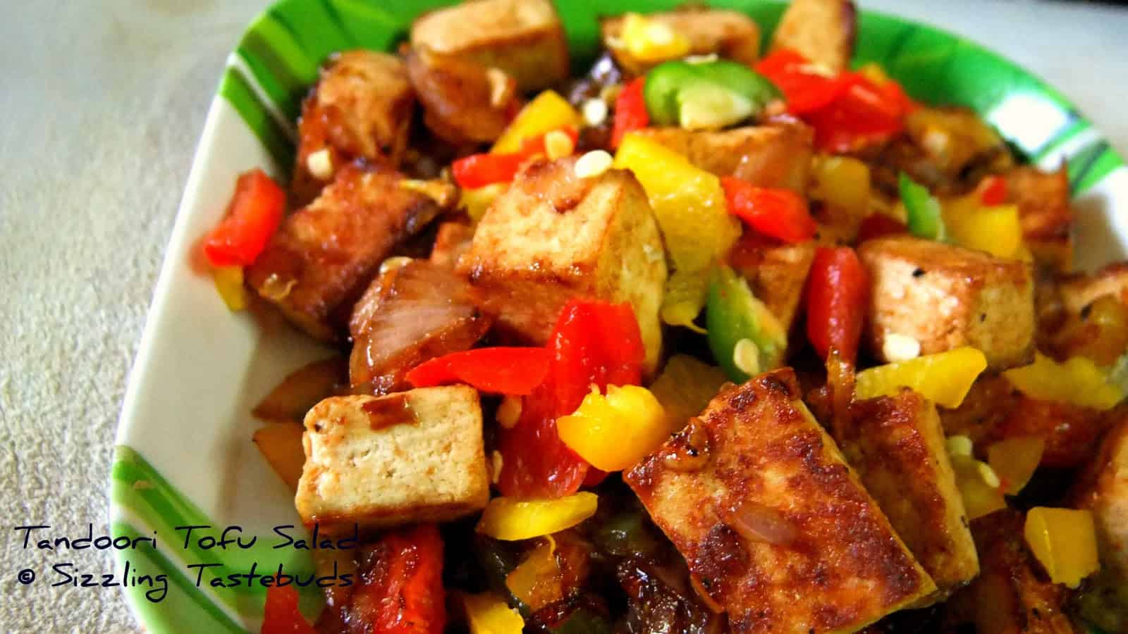 Perhaps one ingredient that was new to me till very recently was Tofu, although we enjoyed the Tofu Grilled Sandwicha lot. Having tasted Paneer,I didn’t take to it too much (still don’t, in a way) ! Perhaps its texture is something I need to get used to. All said and done, today’s dish – Tandoori Tofu Salad- came away as a winner all the way. S loved it as an evening snack. And I somehow thought it would taste good when grilled. But I grilled it before using it, and the taste was much better (or I am told so). This is a quick snack you can put together for potlucks and parties too ! This goes to Pavani's Deceptively delicious-event by Valli & my own event - Global Food Festival &Sangee’s BakeFest,event byVardhini
