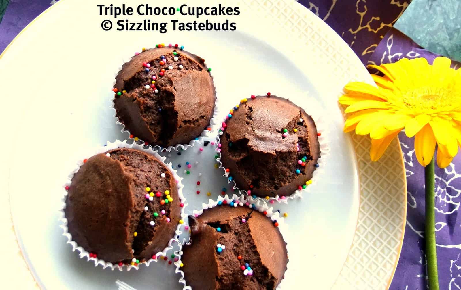 3. Triple Chocolate Cupcakes, and a sinful Indulgence.....Eggless & Wholewheat too !