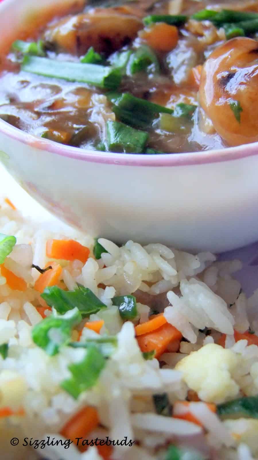 Veg Fried Rice with Low cal Veg Manchurian : A perfect way to beat the monsoon blues !