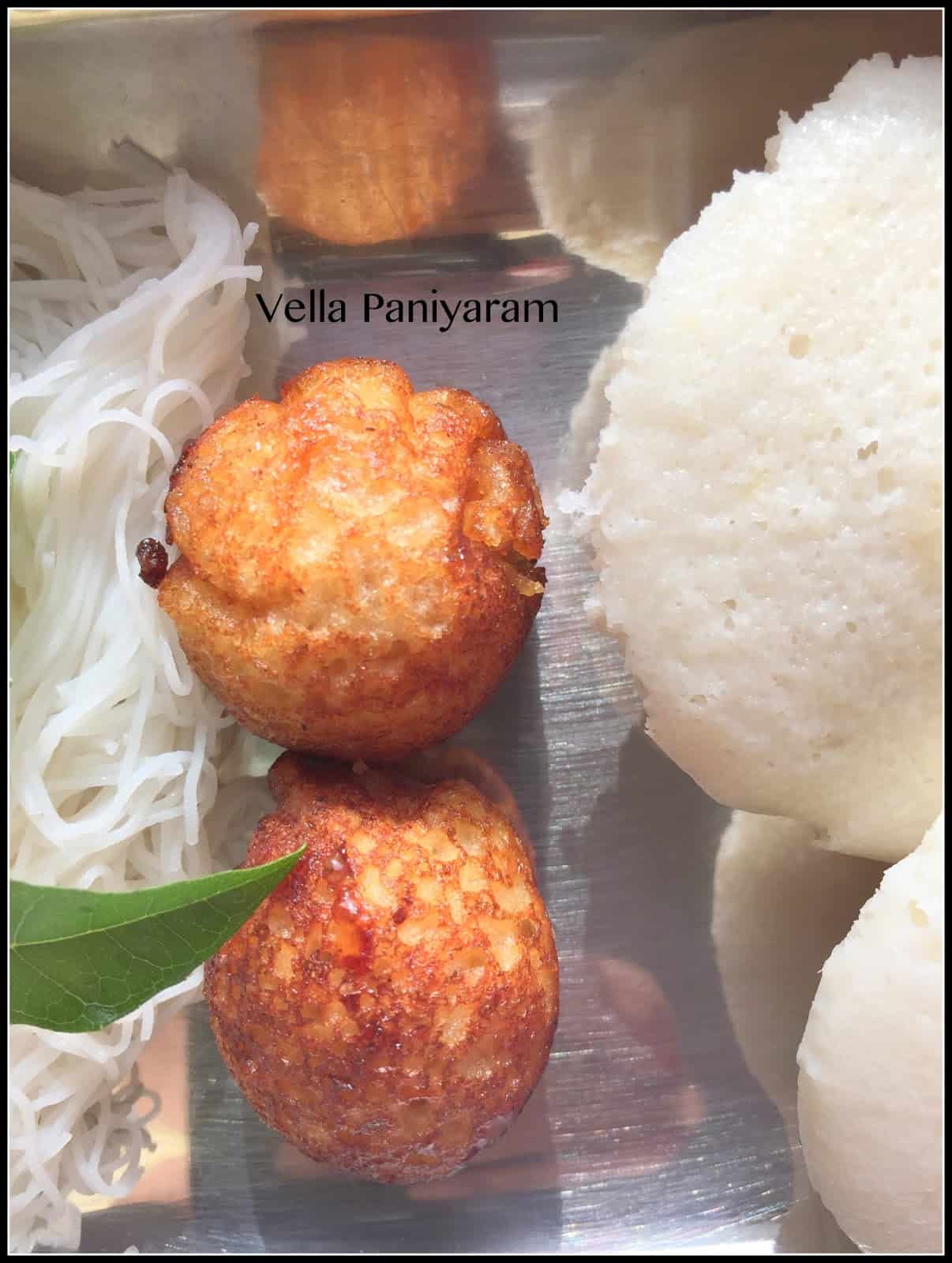 For the linguistically challenged, there is a lot of difference between Vella Paniyaram (aka Inippu Paniyaram or sweet paniyaram) and Vellai Paniyaram (Vellai means White colour) – both are from Chettinad cuisine but are made differently.