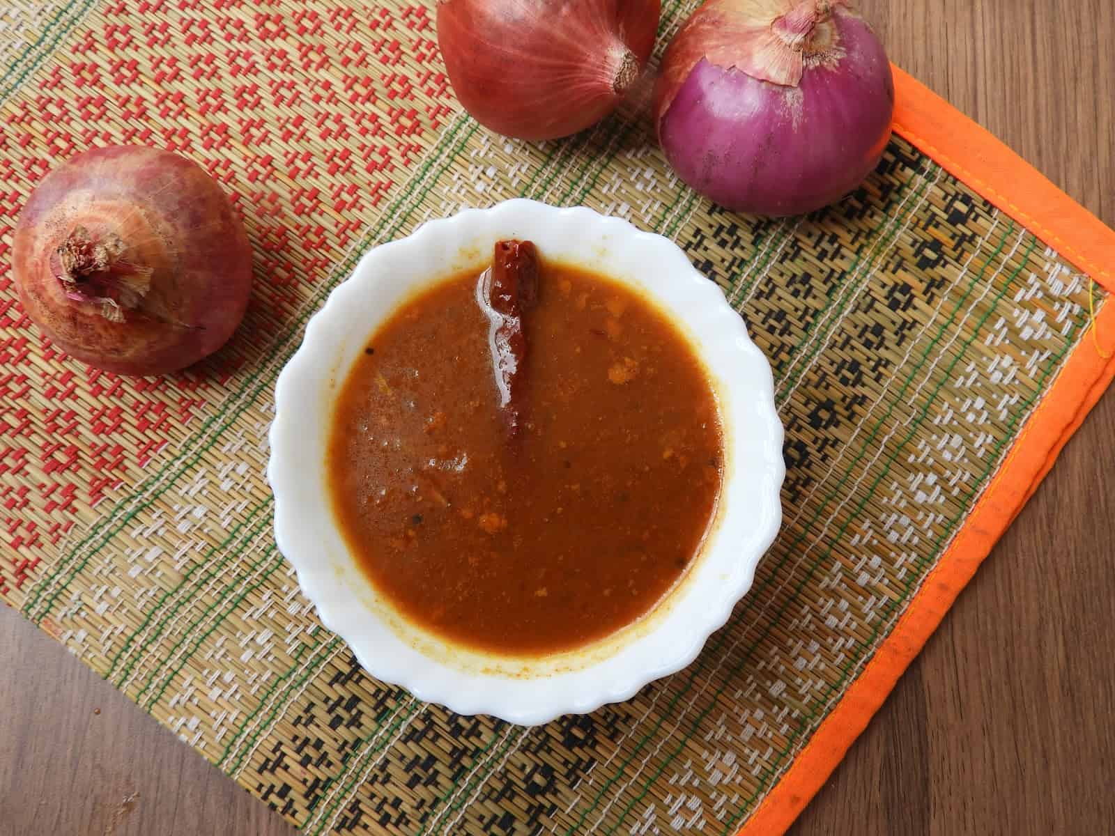 Vattalkozhambu takes bare minutes to prepare, but is a finger-licking delicious confection that has the power to soothe your soul. At least, it does for me. This dish spells out ‘home’ to me. I remember Grandma - and my mother after her - preparing onion vattalkozhambu on good and bad days, as it was so much loved by everyone in the family. The mere smell of the gravy cooking was enough to bring a smile on my face, and that remains the same till date. No wonder this is the dish I resort to making when I am down or on days when I want to eat something hearty, but am clueless about what to make.