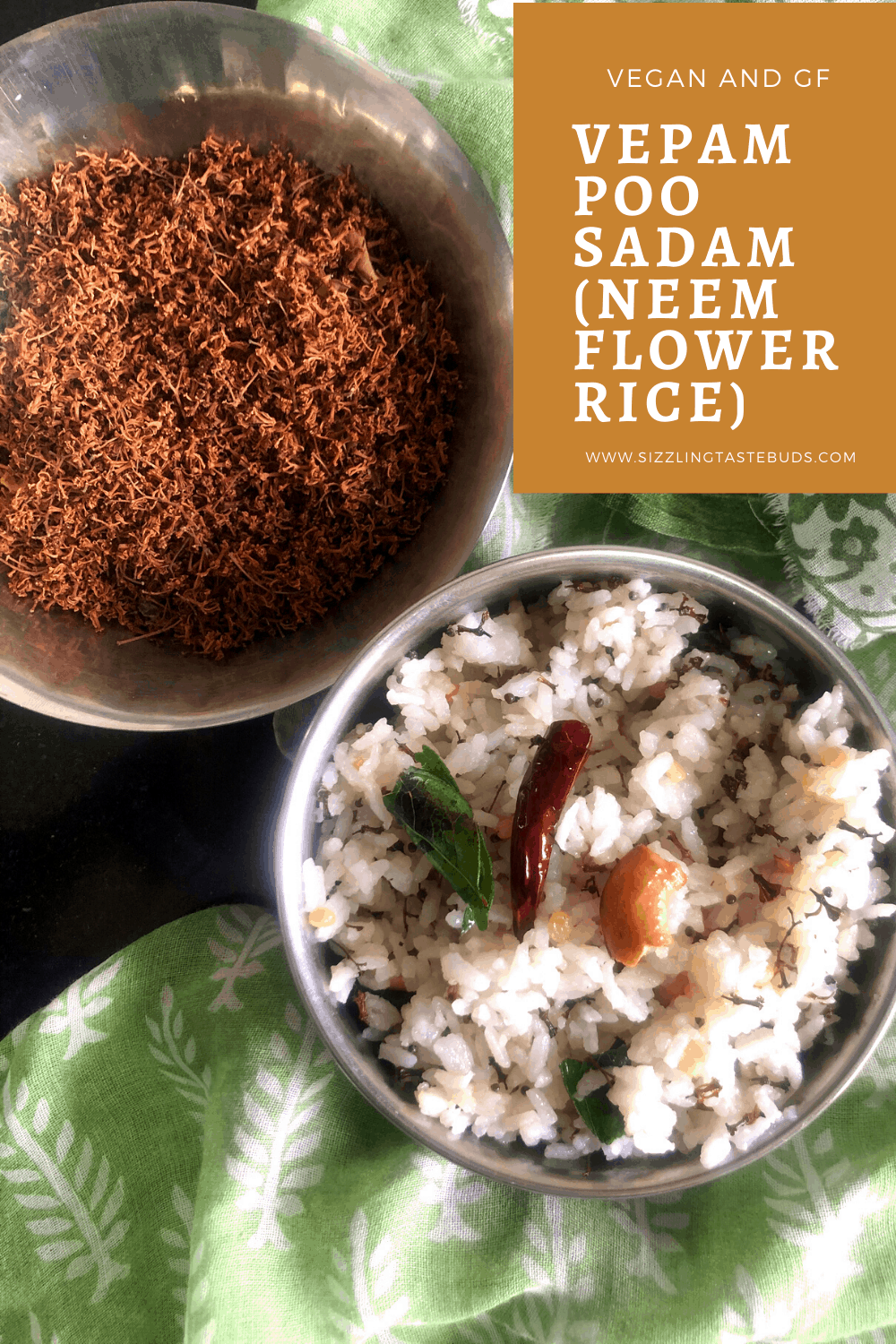 Coming to today's dish - Vepampoo Sadham (or Dried neem flowers rice). This is a delicious vegan and GF dish that's served in small quantities as the first course for upset stomach / indigestion or even as deworming.